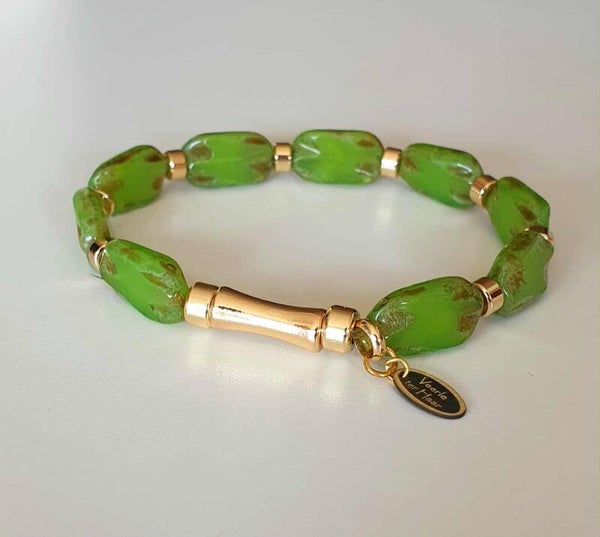 Mooie table cut Travertine czech glass armband kleur appel groen