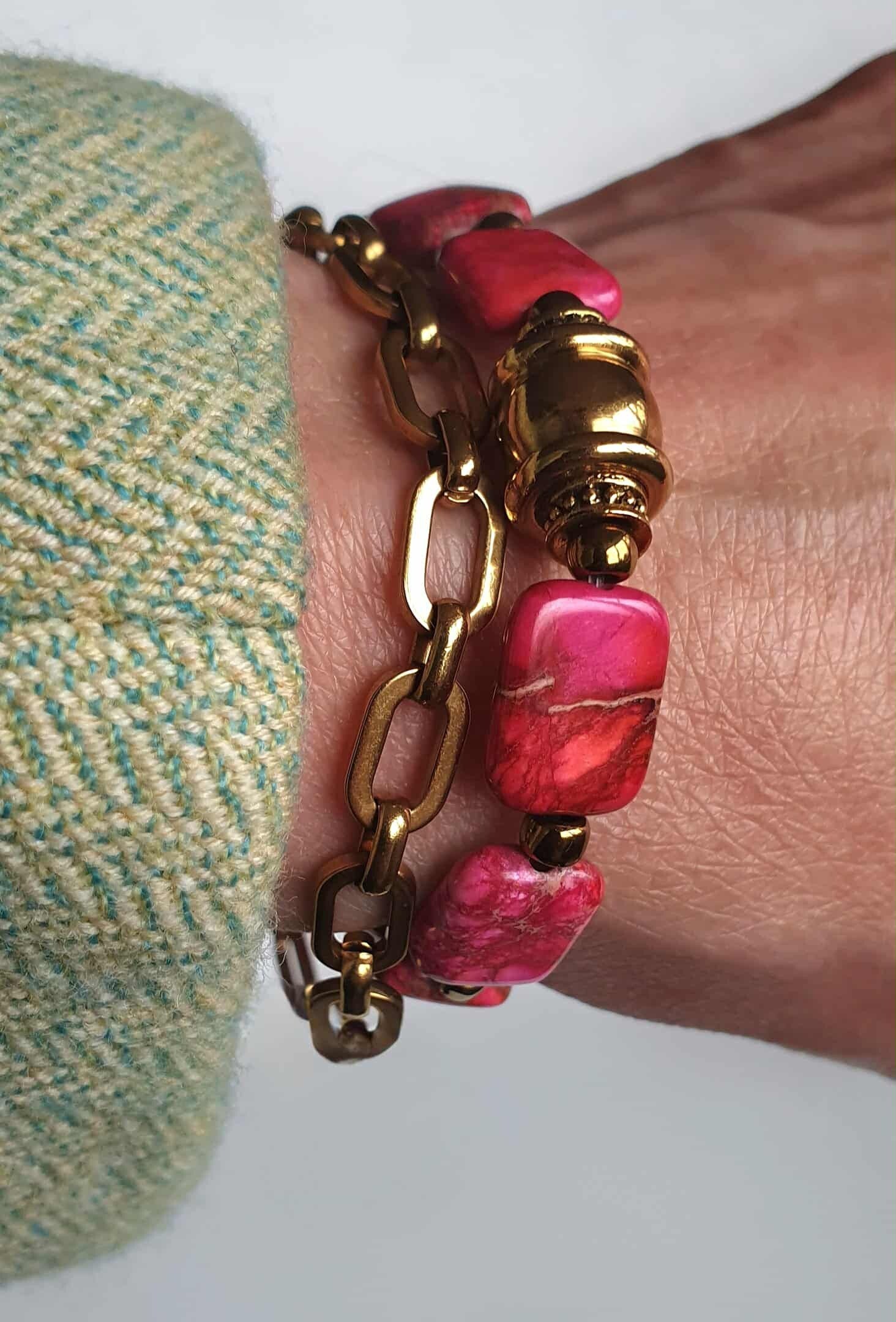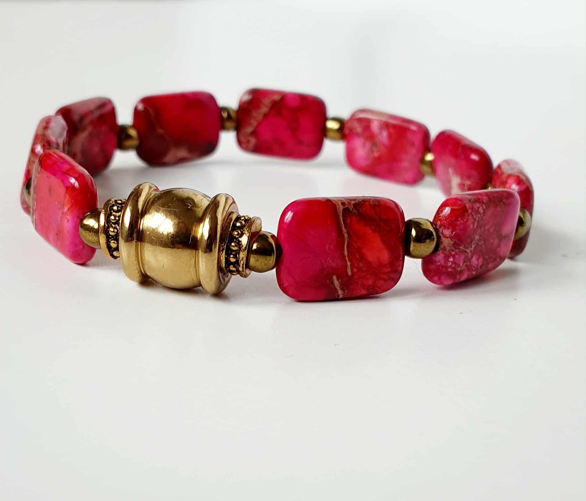 Mooie imperial Jaspis stenen armband. Komt in fuchsia roze en donker rood.