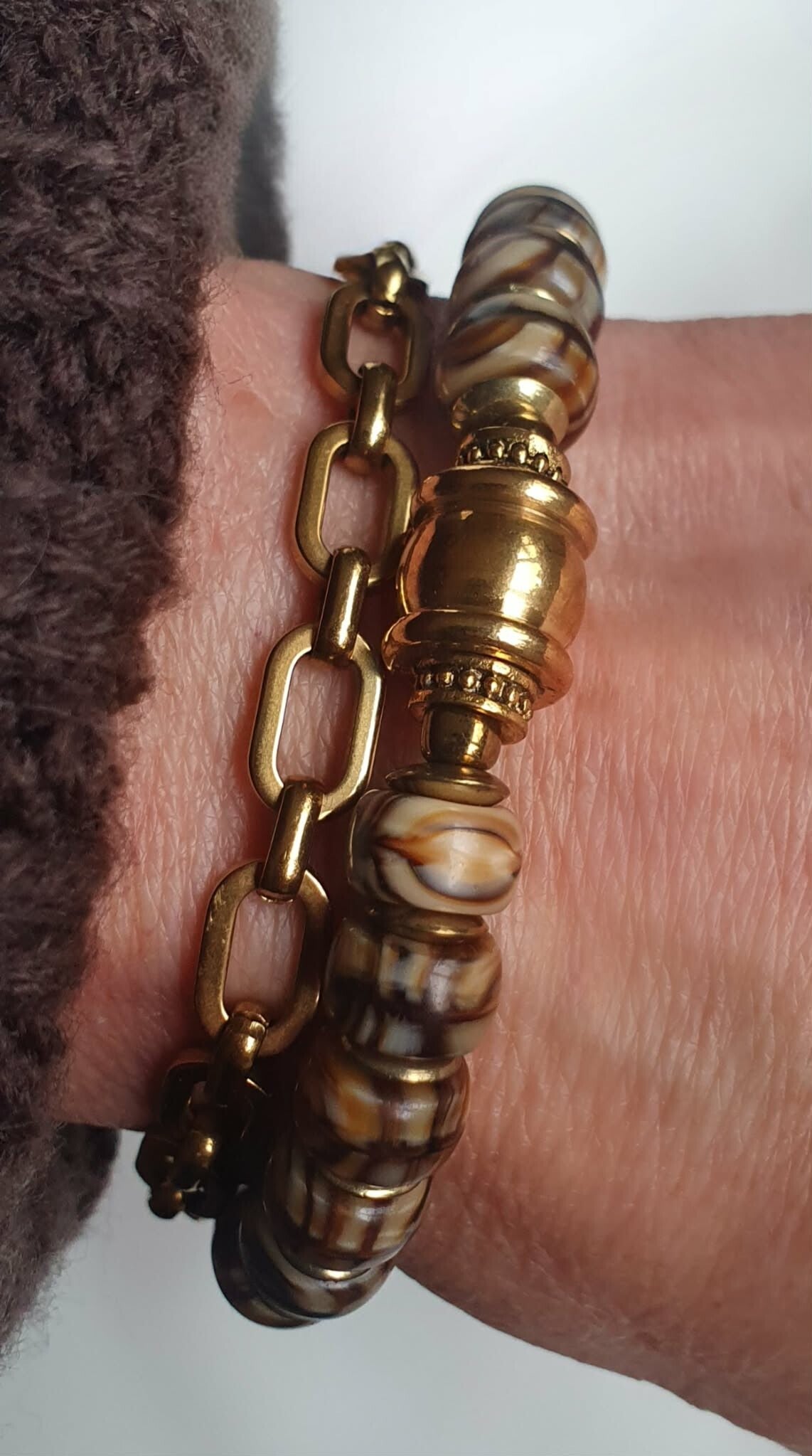 Bruin/ beige armband met doorlopende kleur design.